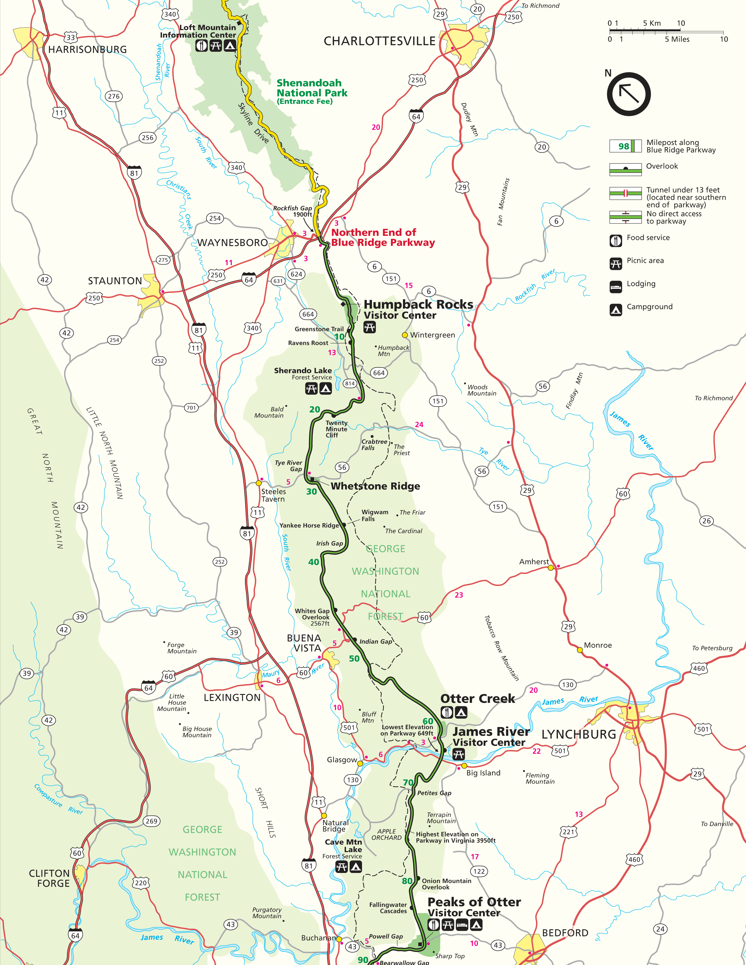 These 5 road maps are the official Blue Ridge Parkway maps courtesy of the National Park Service. They cover the entire Blue Ridge Parkway including all of the key attractions and things to do along America's favorite scenic highway.